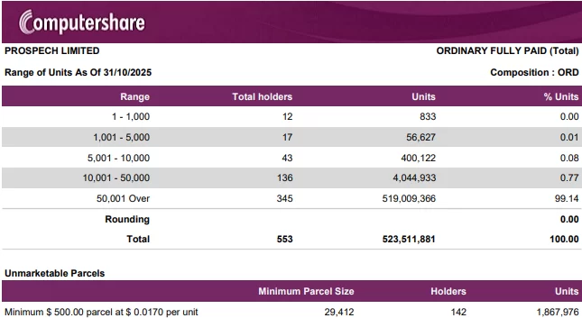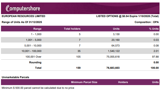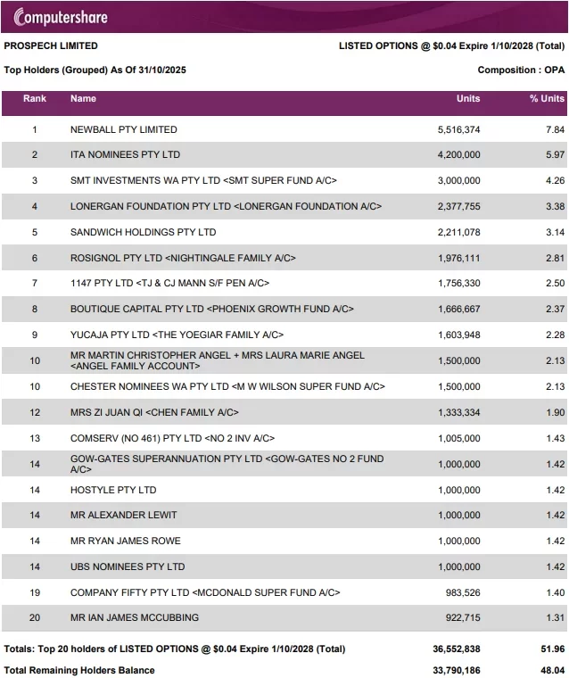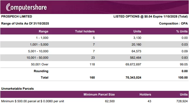 2025-10-01 – Top 20 Quoted Option Holders and Distribution Schedule