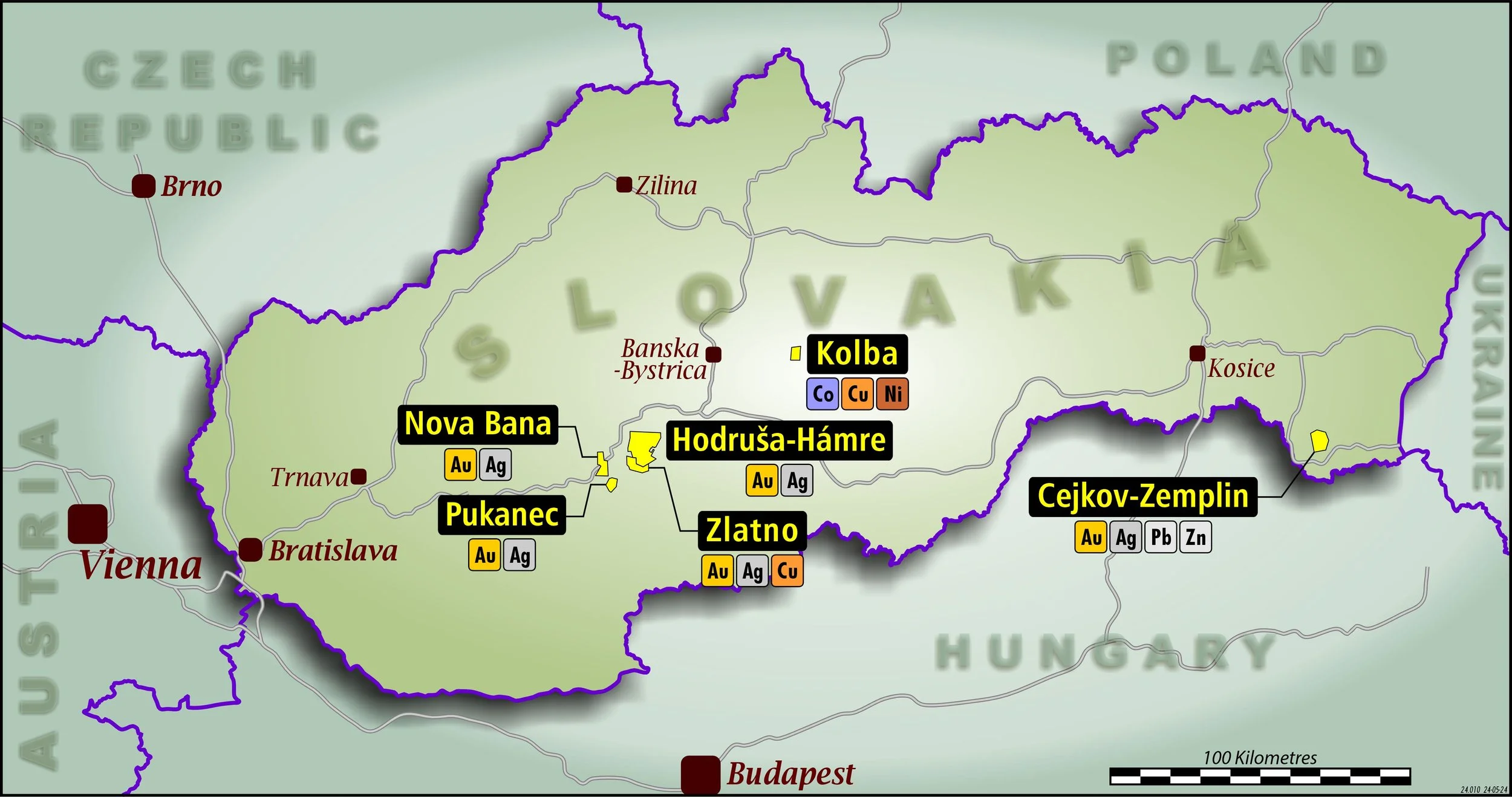 Located 200 kilometres east of Vienna, the 101.92km² Hodrusa-Hamre exploration licence covers the majority of the historic Hodrusa-Hamre/Banska Stiavnica mining district, the caldera of the Neogene Stiavnica Stratovolcano, and hosts some 120 epithermal veins with the major veins individually reaching a length of up to 6 km long.