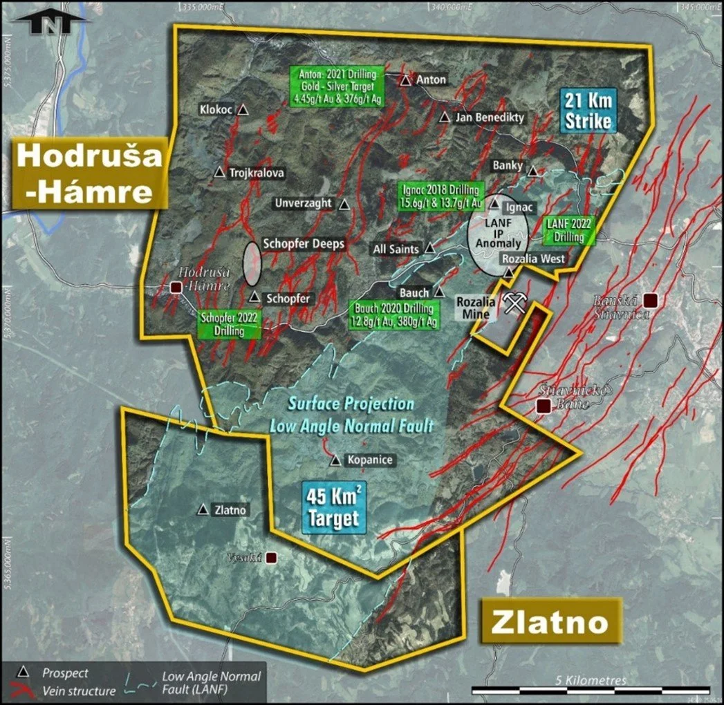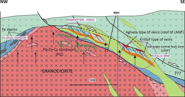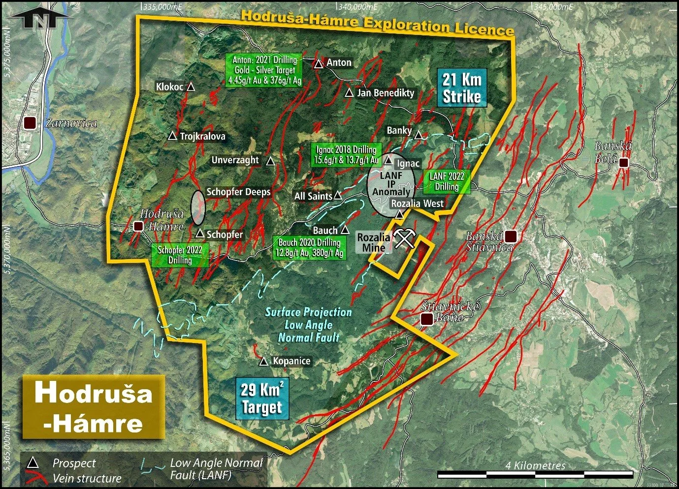 Targets identified in the Hodrusa-Hamre exploration licence include the newly recognised LANF (Low Angle Normal Fault), Ignac-Rabenstein, Bauch, Unverzagt-Alzbeta, Schopfer and Kopanice.